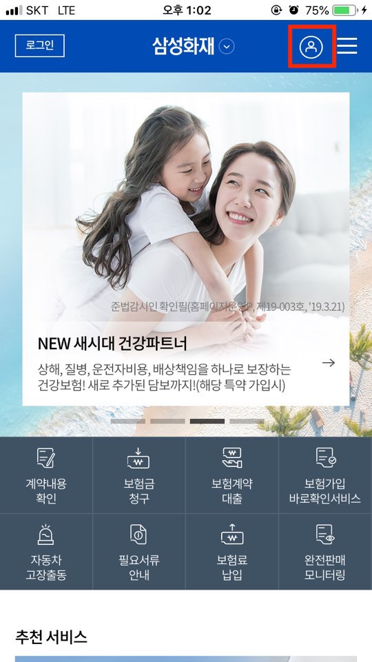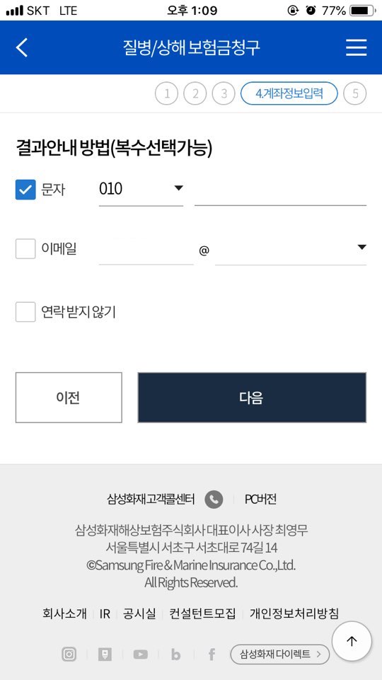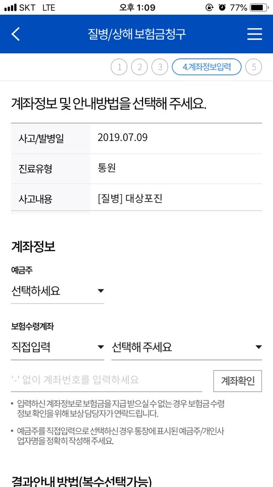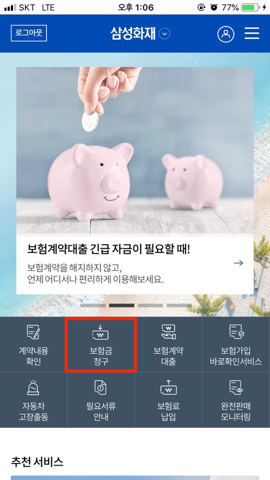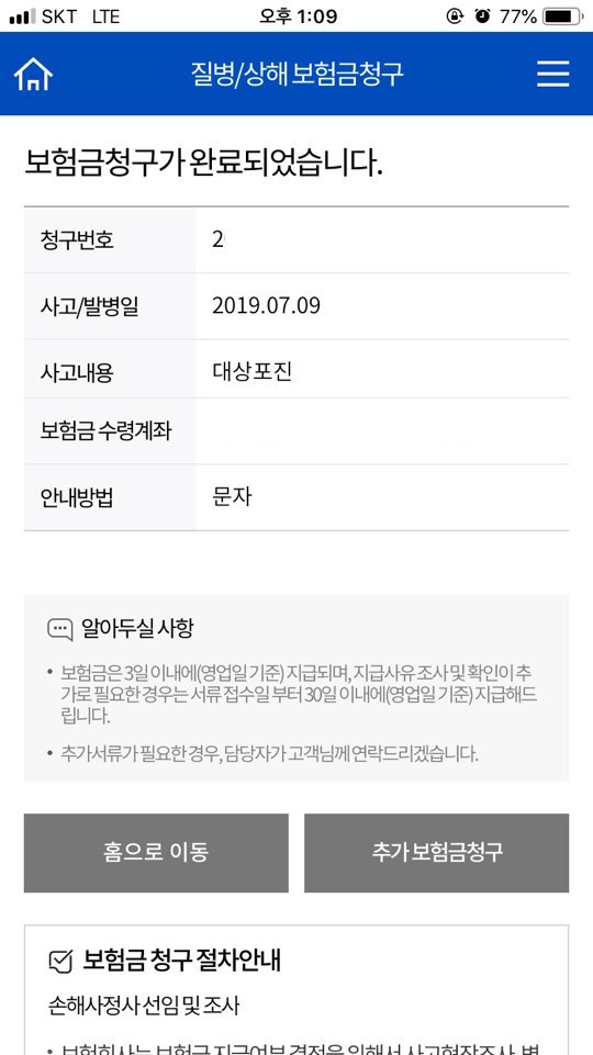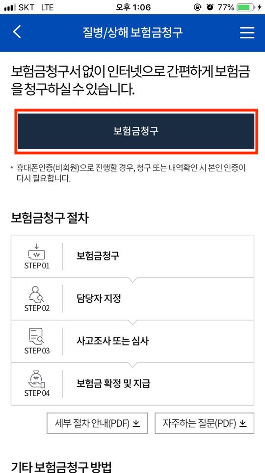 마찬가지로 보험금 청구로 들어갑니다.