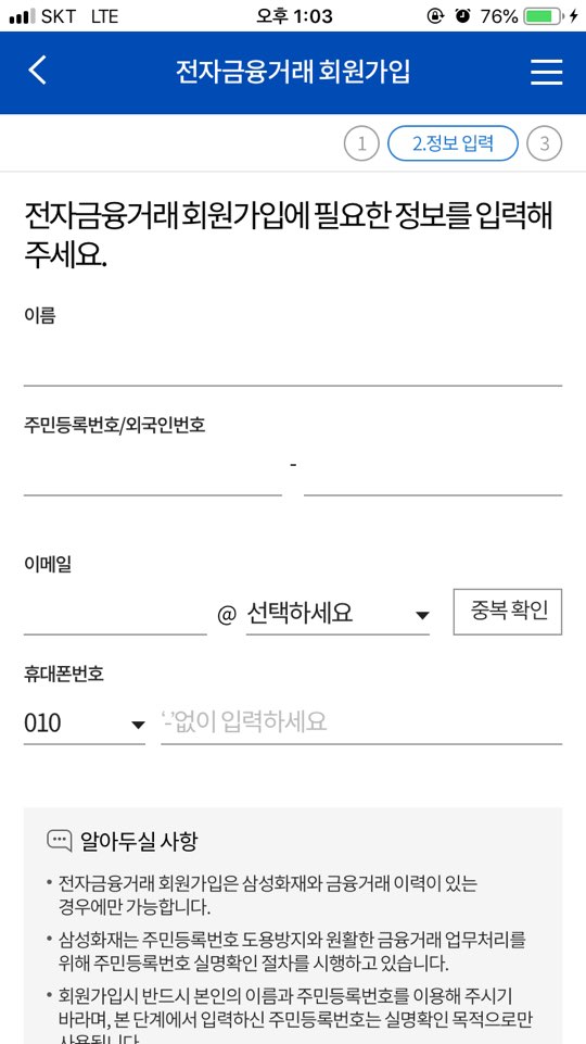 전자금융거래 회원가입도 마찬가지로 휴대폰번호 인증을 해야합니다.