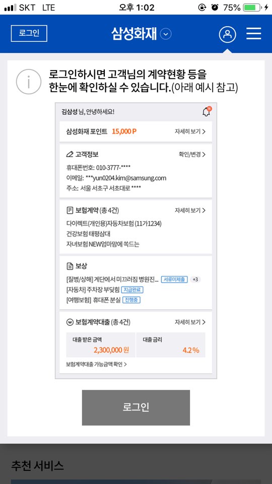 가입을 완료하면 자동으로 로그인이 됩니다. 보험금 청구로 들어갑니다.