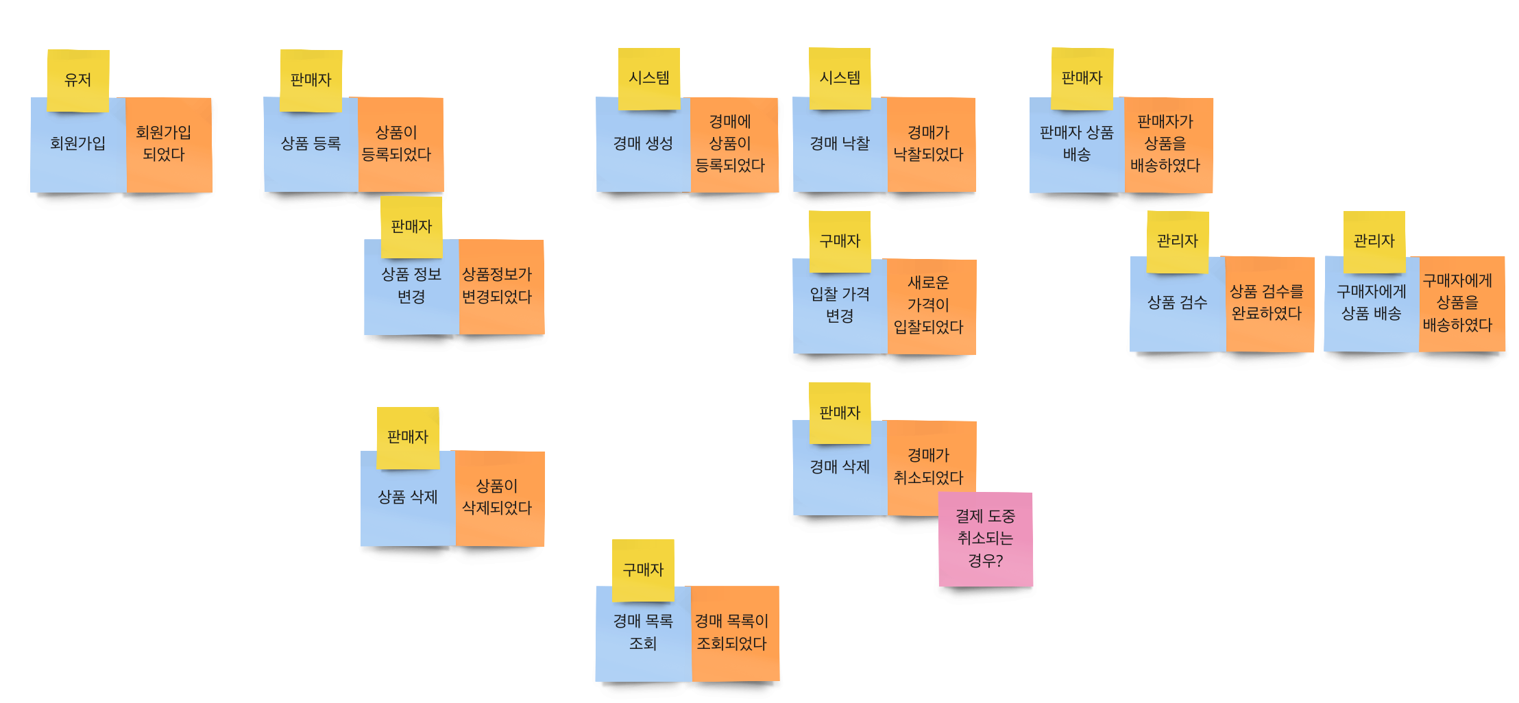 - 경매 낙찰/새로운 가격 입찰/경매 취소등의 경우 경매 상품이 등록된 이후에 가능하므로 좌->우로 배치했다.