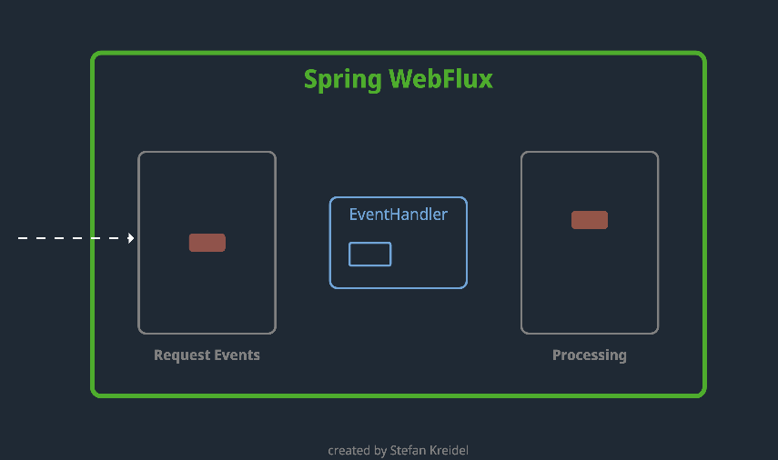 일반적으로 EventLoopGroup에 의해 관리되는 2개의 이벤트 루프가 항상 실행된다. 각 이벤트 루프는 요청을 수락하거나(서버 관점에서) 생성(클라이언트 관점에서) 할 수 있는 여러개의 SocketChannel을 처리한다. 새로운 소켓 채널이 생성될 때마다 하나의 이벤트 루프로 바인딩되고 이는 더이상 변경할 수 없다. 소켓은 하나의 이벤트 루프에 바인딩되며 더이상 변경할 수 없다는 점, 이것이 일반적인 스프링 MVC와의 가장 큰 첫 번째 차이점이다. 이는 블락킹된 이벤트 루프가 다른 이벤트 루프는 여유로운 상태임에도 불구하고 사용자로부터 오는 요청을 처리할 수 없는 상태가 된다는 것을 의미한다.