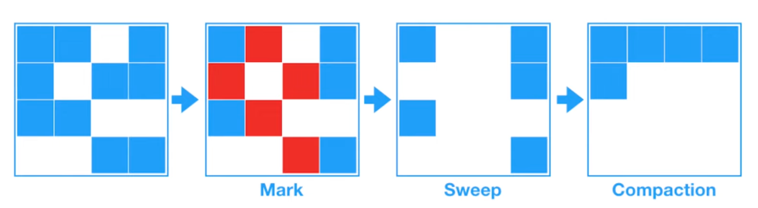 GC가 GC root로부터 참조되는 객체들을 예의주시하는것을 Mark한다고 한다. 그리고 마킹했던 객체들을 탐색하고 GC root로부터 참조관계가 끊겨 unreachable 메모리가 발생하면 GC가 동작하면서 해당 메모리를 수거해가는 동작을 Sweep이라고 한다.