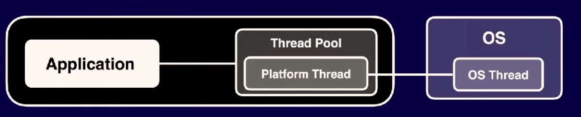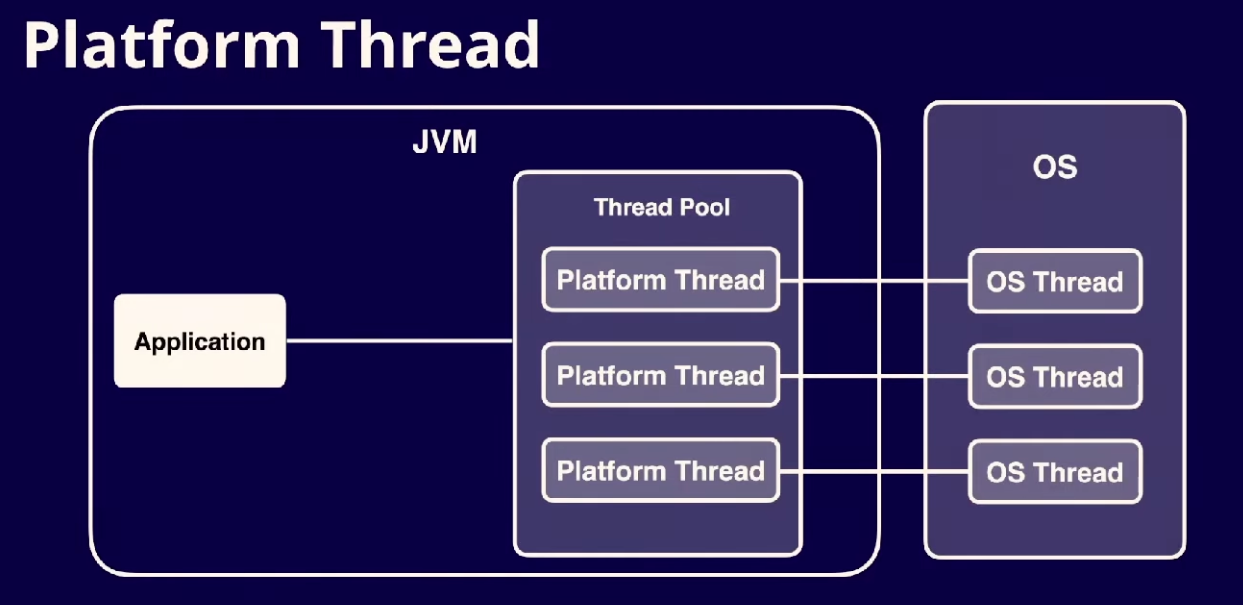 Platform Thread는 위 사진과 같이 OS Thread와 1:1로 매핑되는 구조를 가지고 있다.