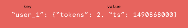 각 유저별로 마지막 요청의 타임스탬프와 잔여 토큰 수를 해시 자료구조로 저장한다. user_1은 버켓에 2개의 잔여 토큰이 있으며 Thursday, March 30, 2017 at 10:00 GMT에 마지막 요청을 보냈다.
